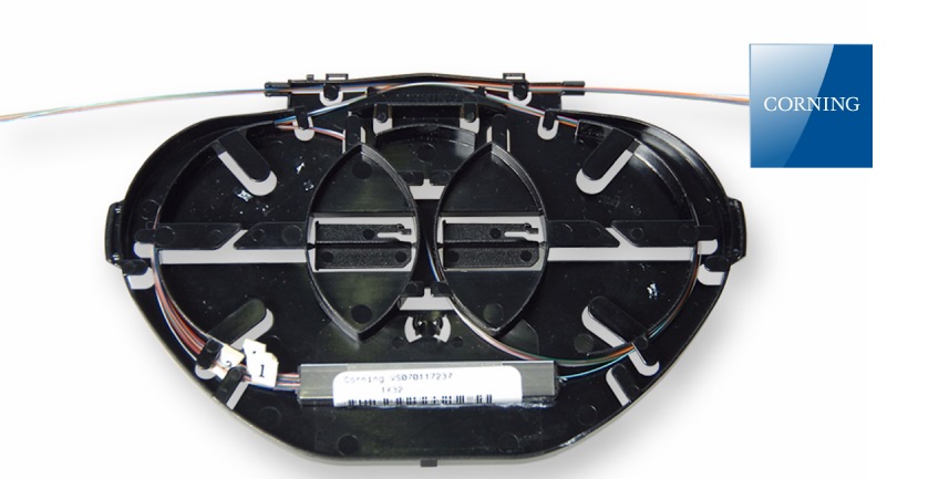 SE tray with 1 splitter 1x4, black CORNING FTTH Information resource Links SE tray with 1 splitter 1x4, black English German CORNING